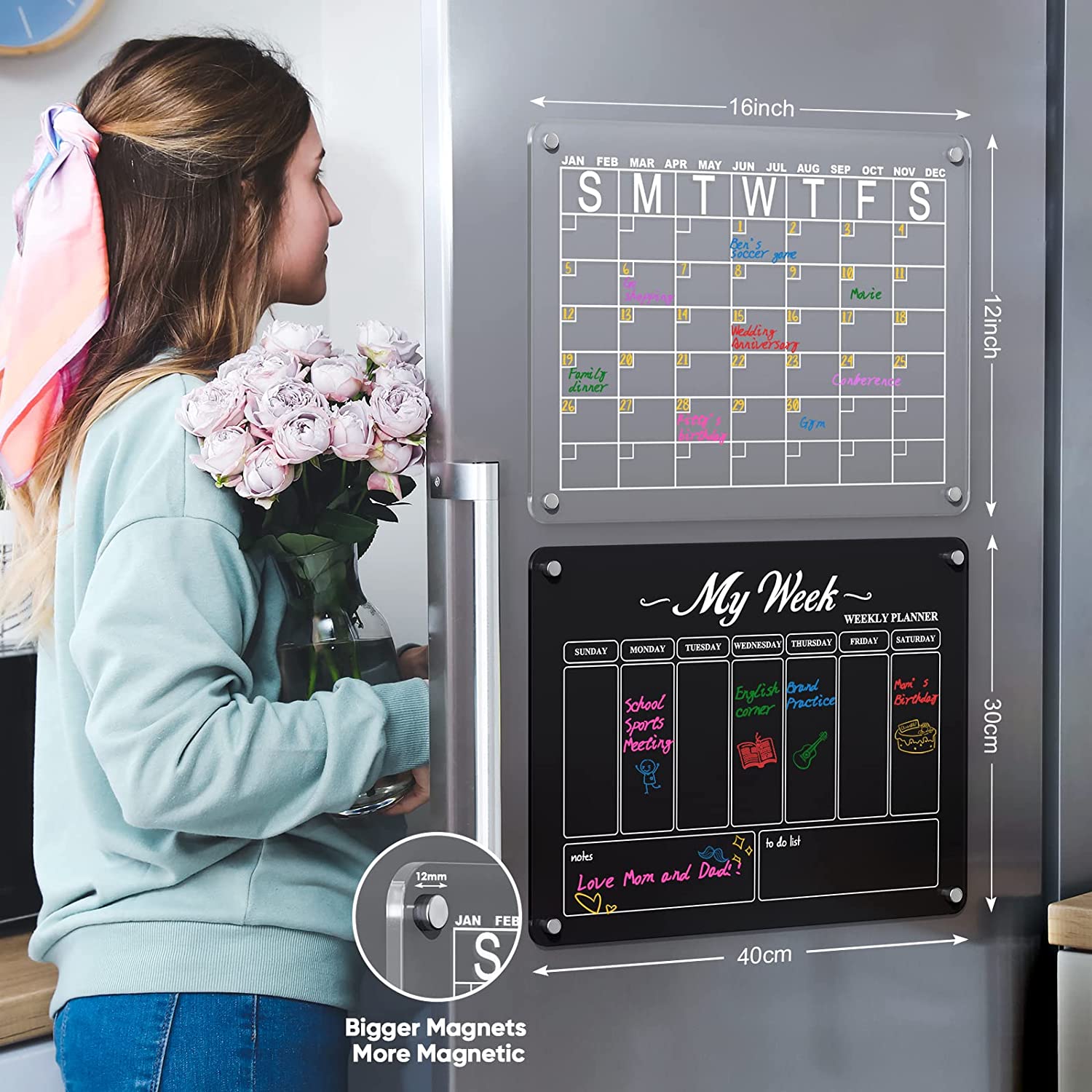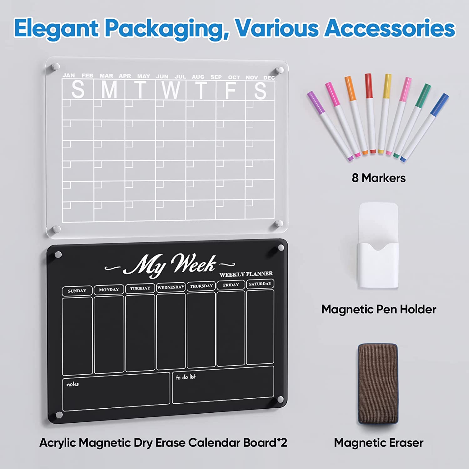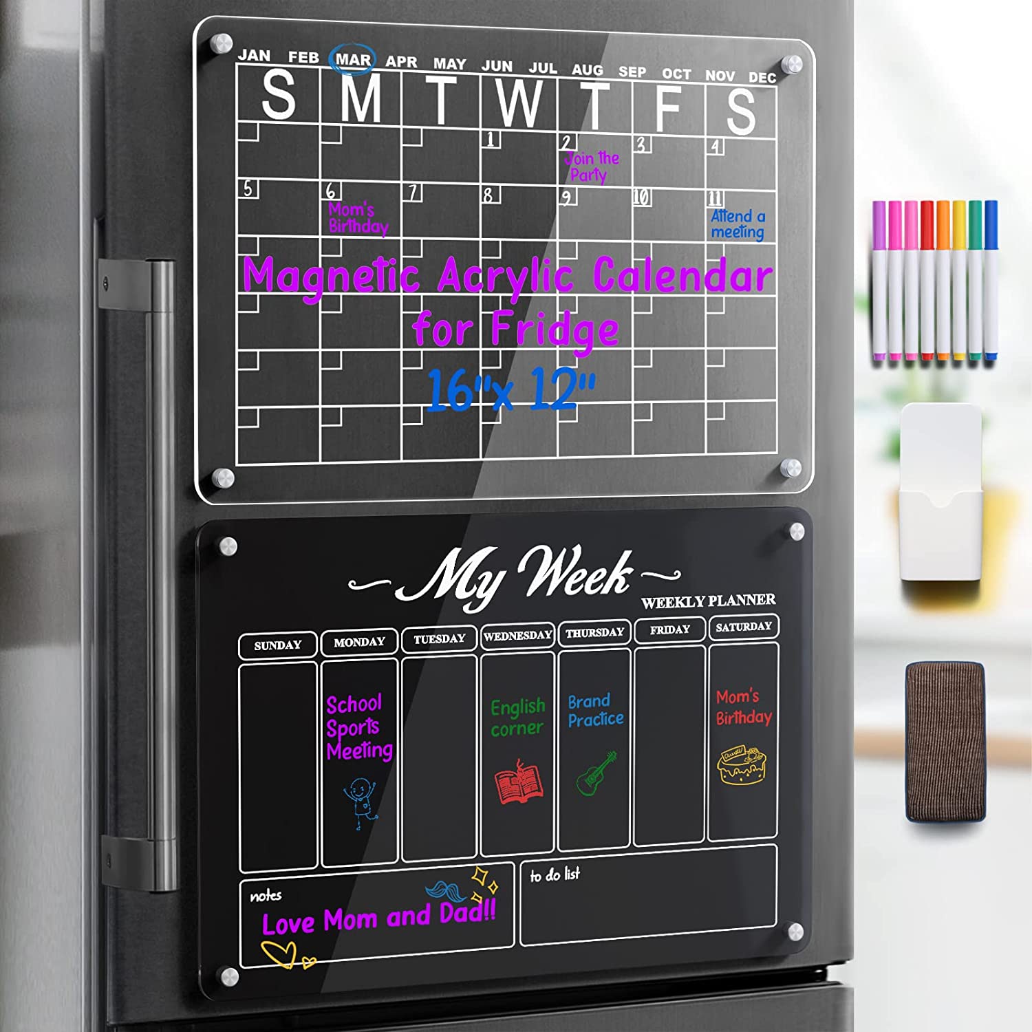 acrylic dry erase magnetic white board calendar monthly planner set