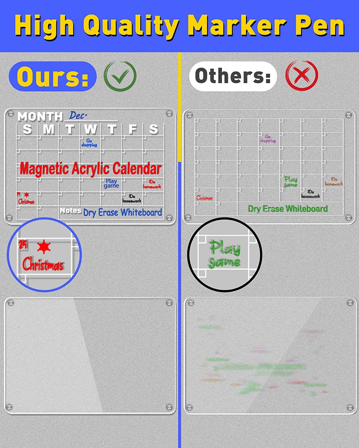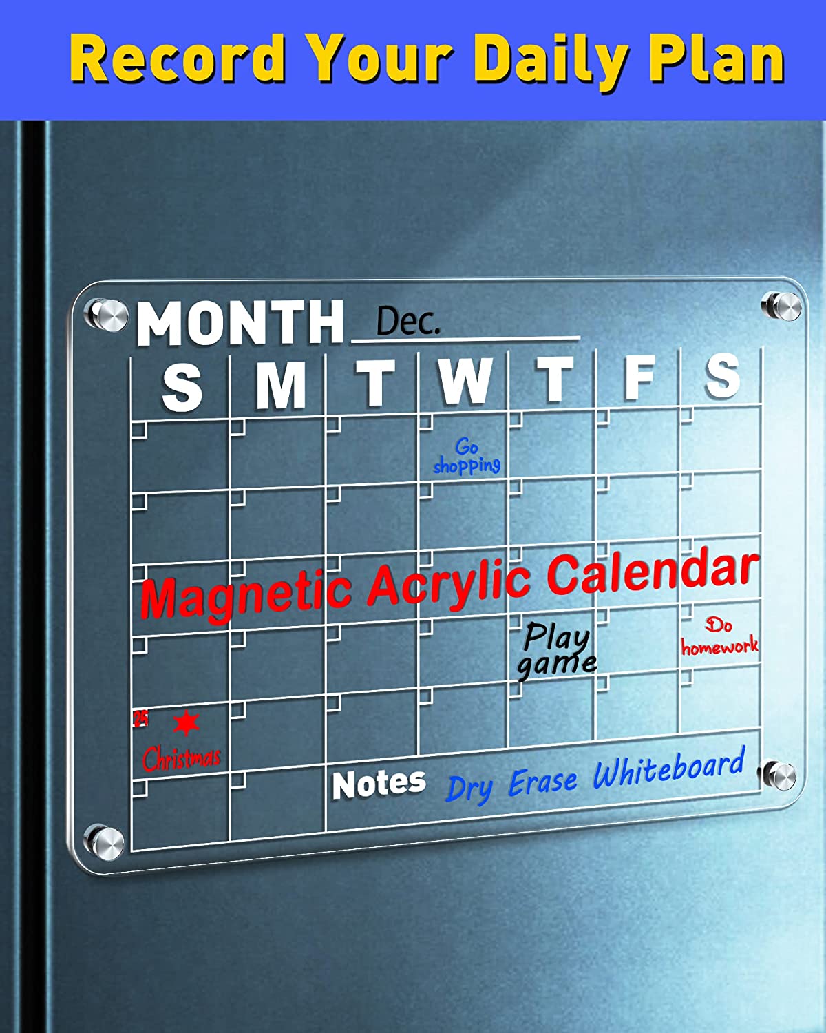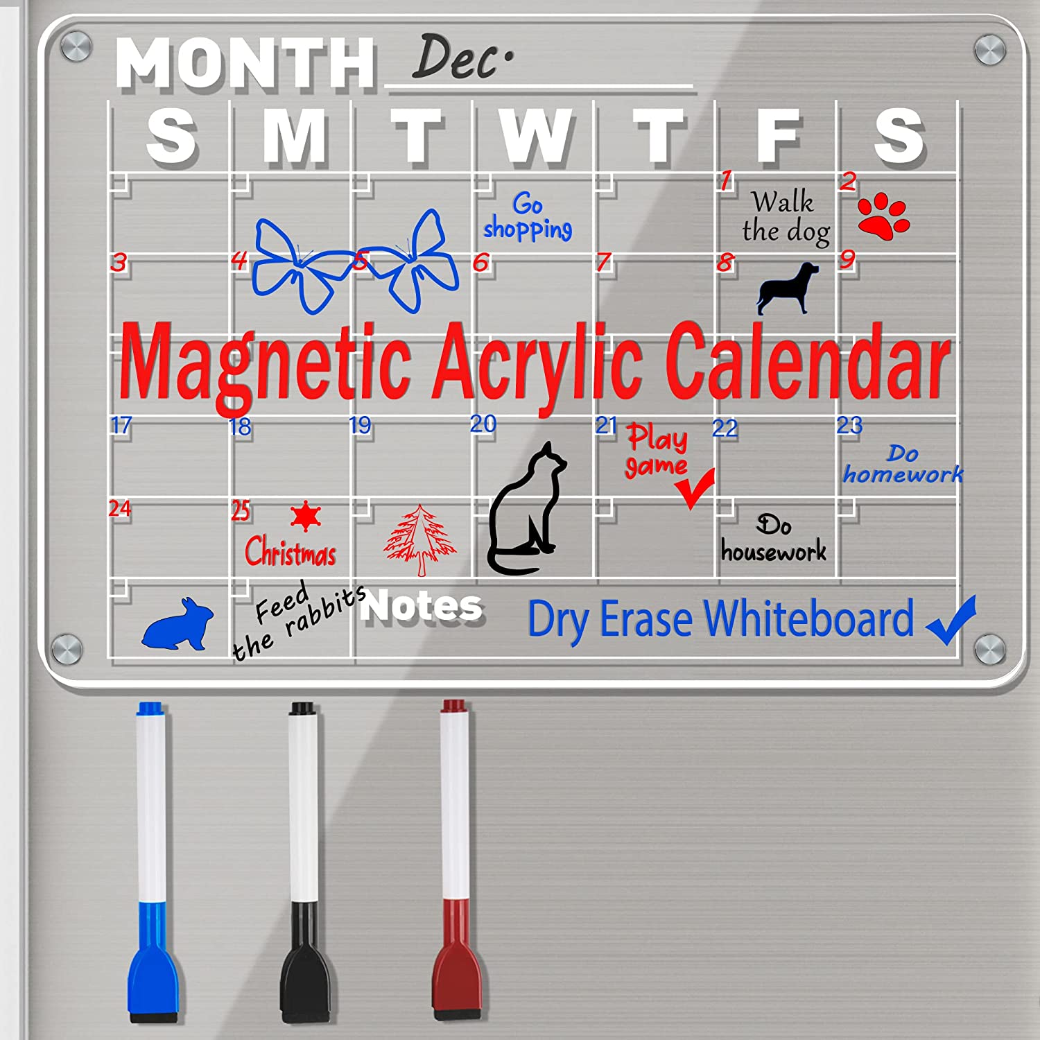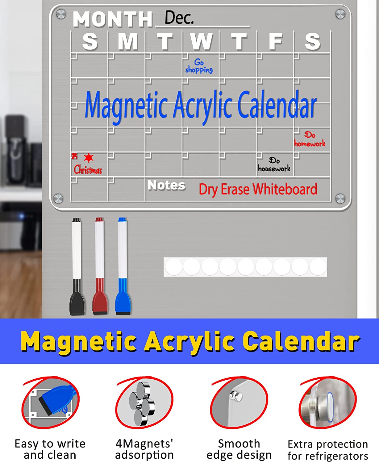 Magnetic Acrylic Calendar for Fridge, Acrylic Calendar, Clear Dry Erase Calendar for Fridge,12*16 inch