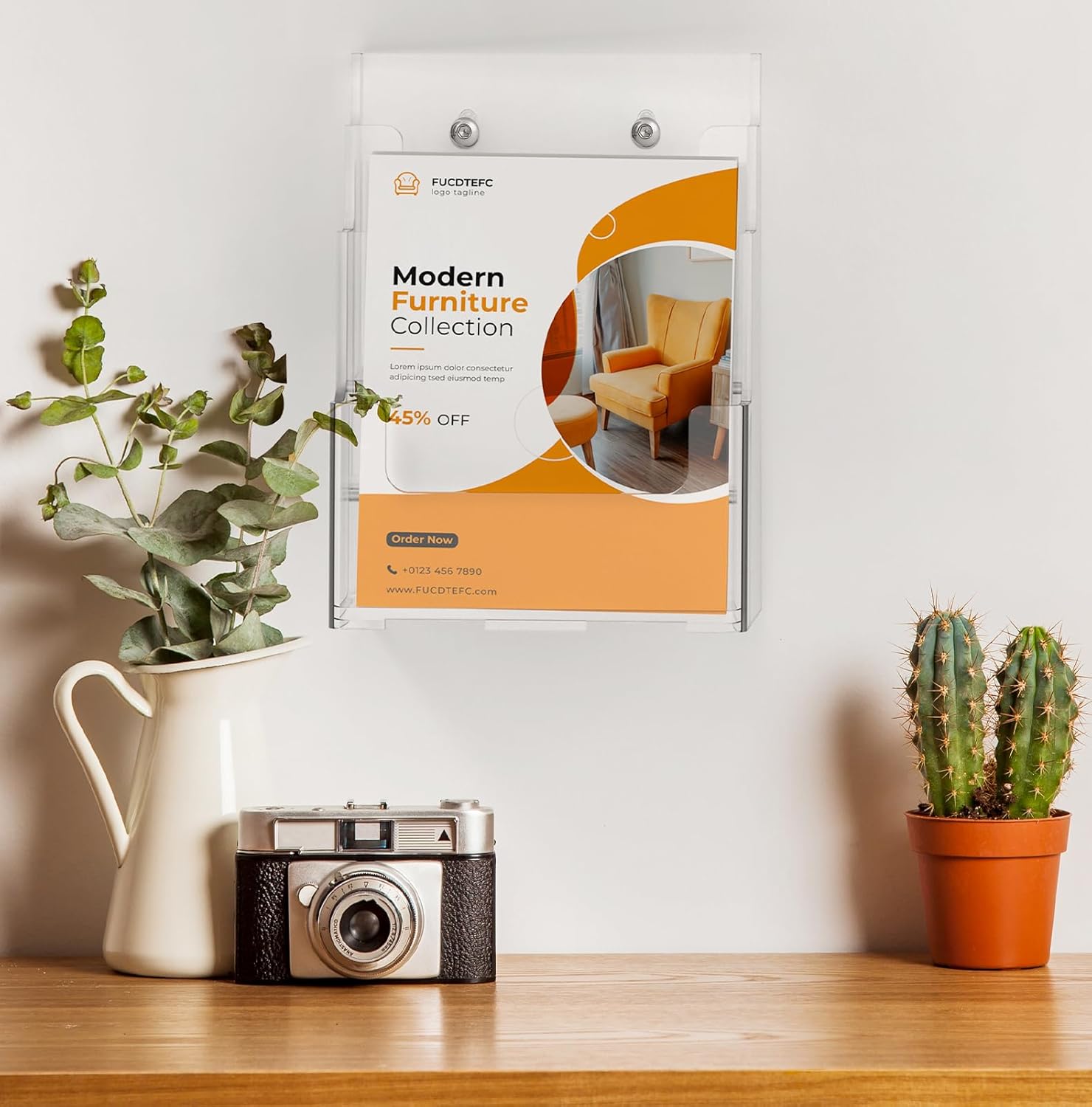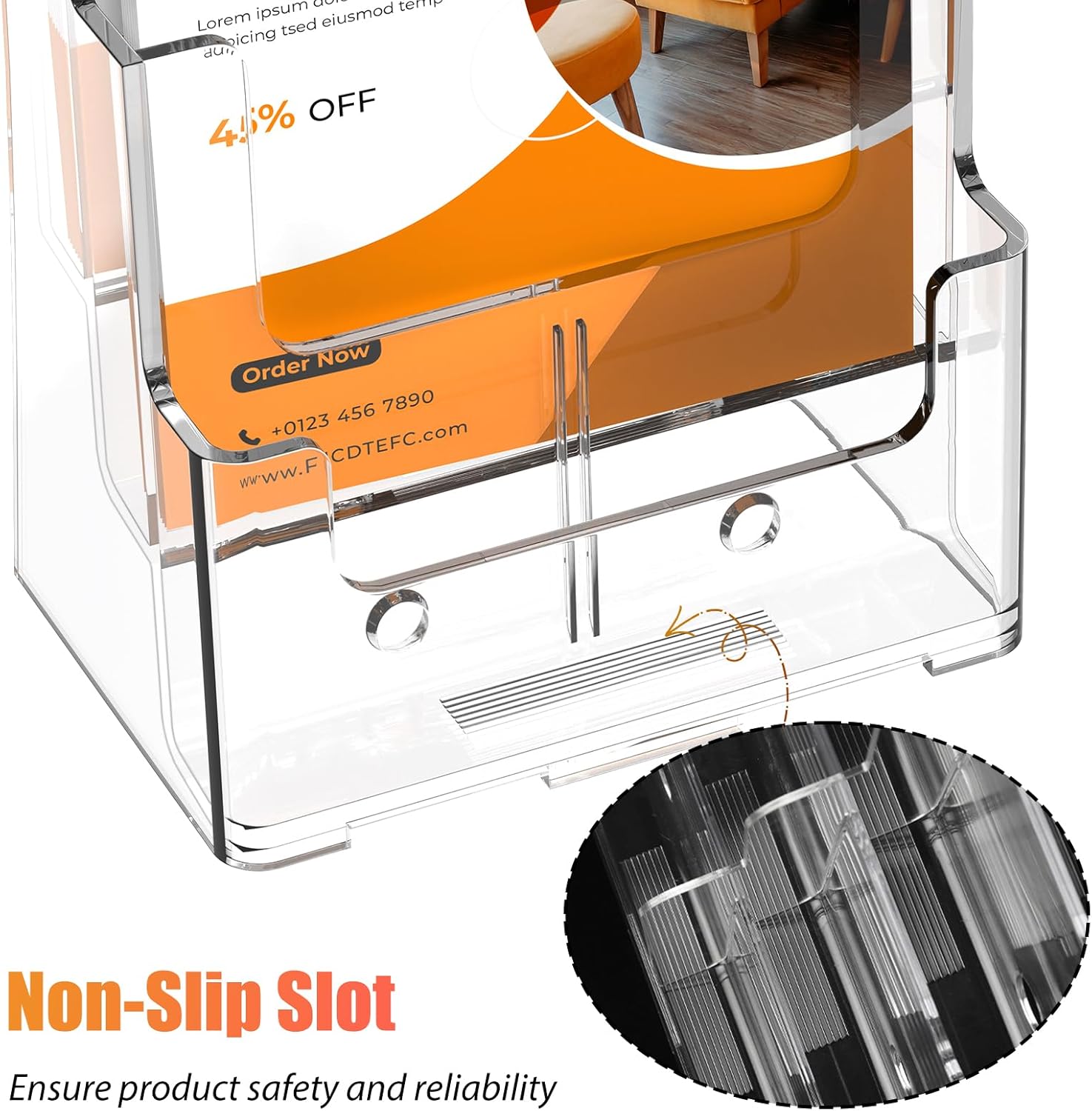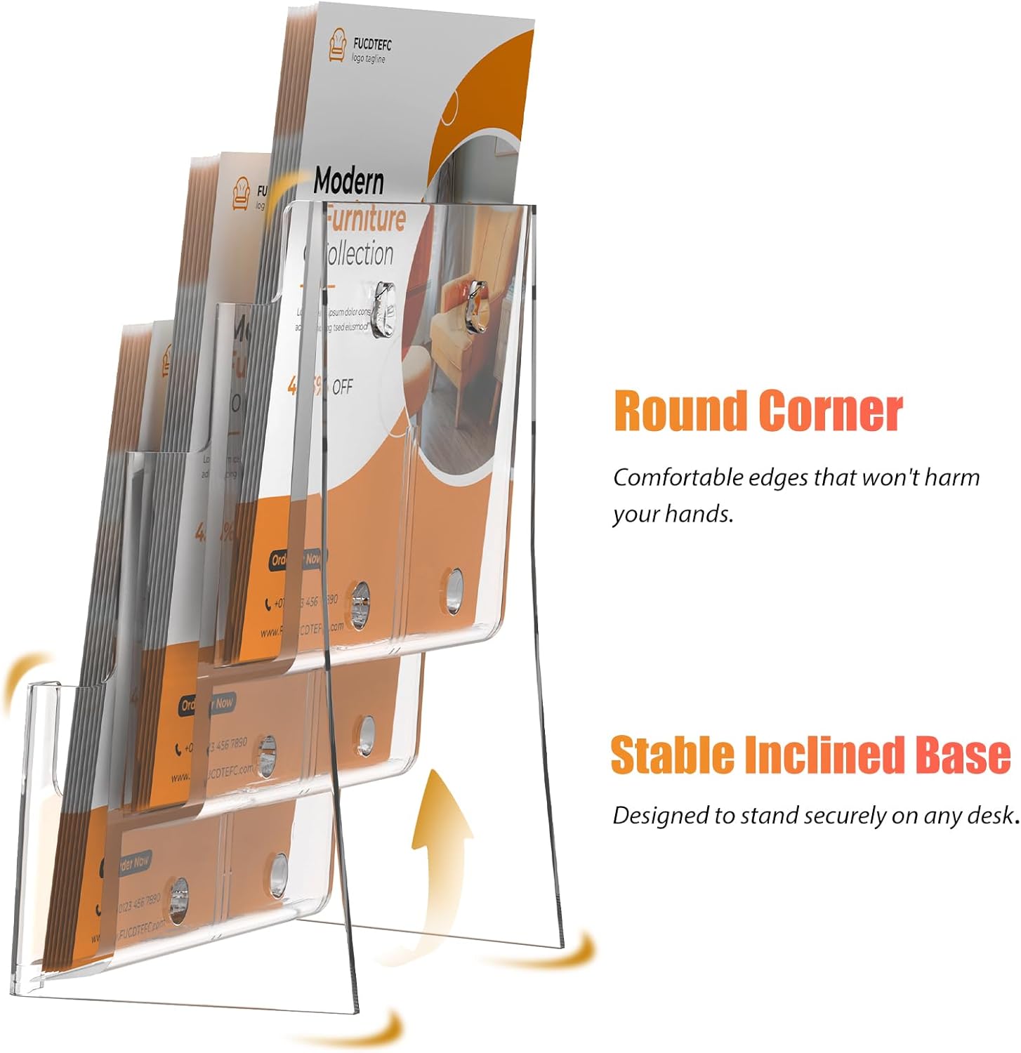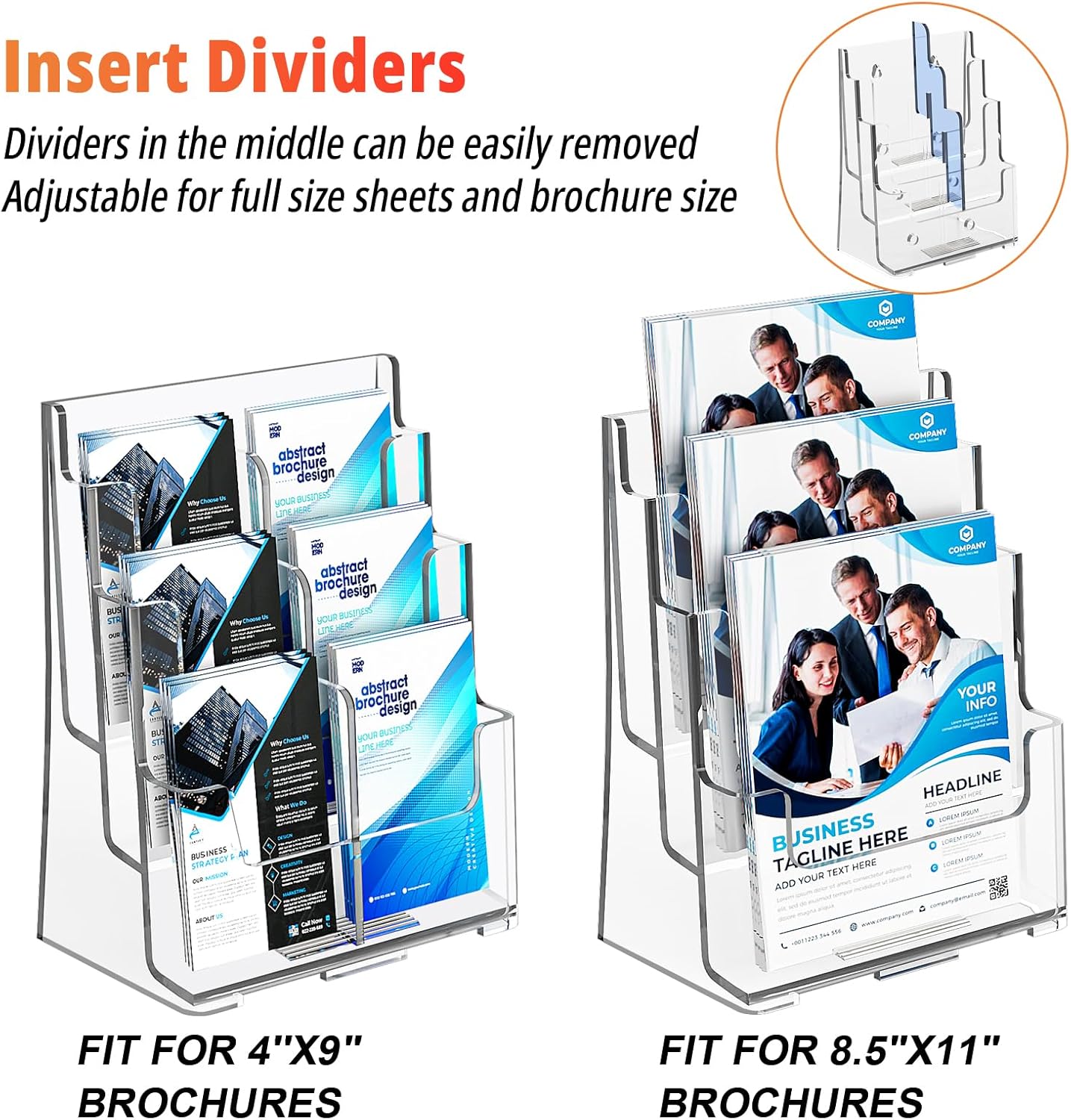 Acrylic Brochure Holder 8.5x11, Clear 3 Tier Magazine Holder Brochure Display Stand With Removable Divider