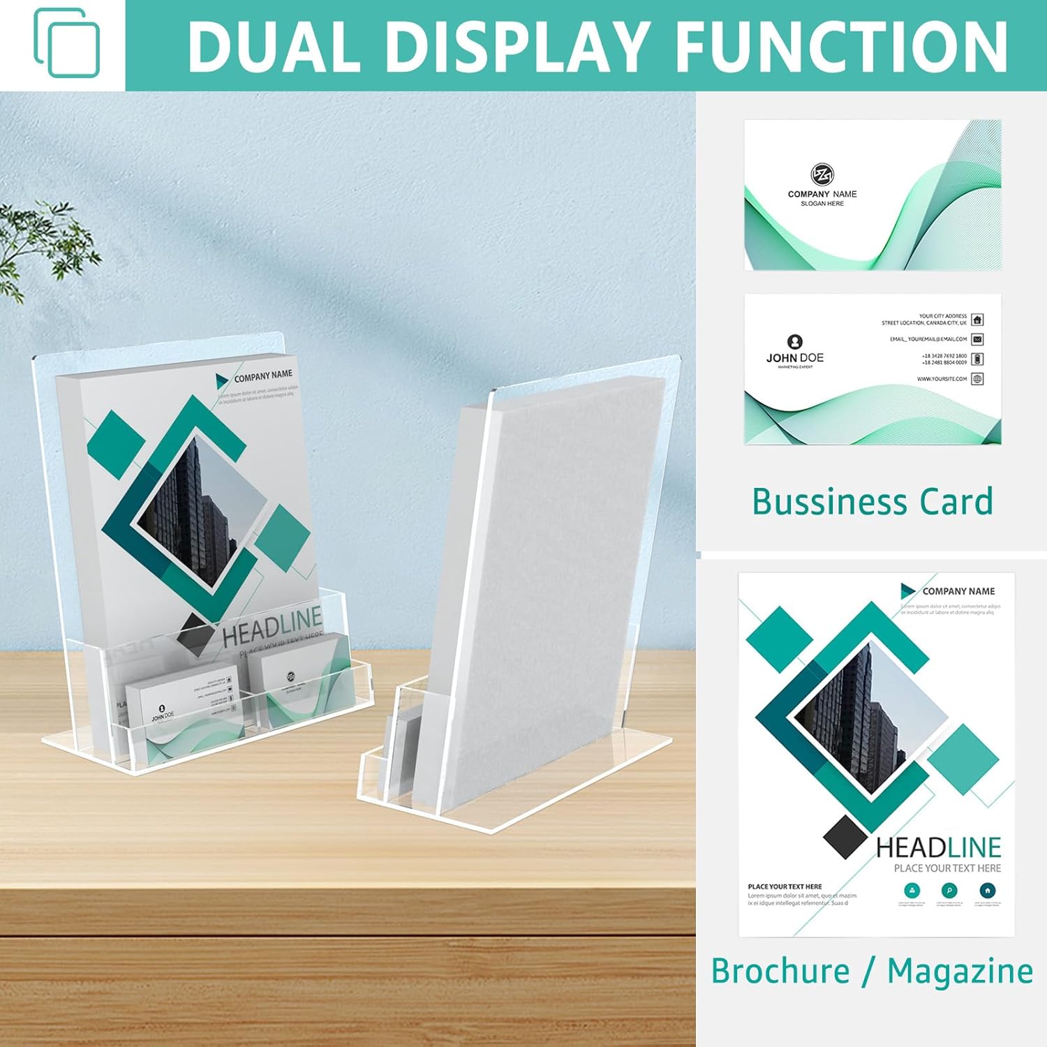 Acrylic Brochure Holder 8.5 x 11 Inch with Business Card Holder